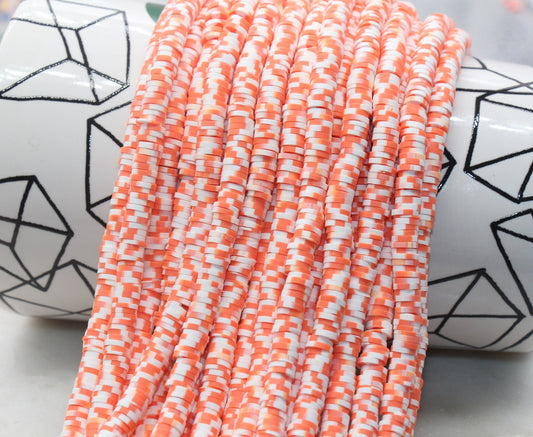 6mm Orange Speckled Heishi Beads, Orange with White Speckled Polymer Clay Disc Beads, African Disc Beads, Vinyl Heishi, 16 inch Strand #460