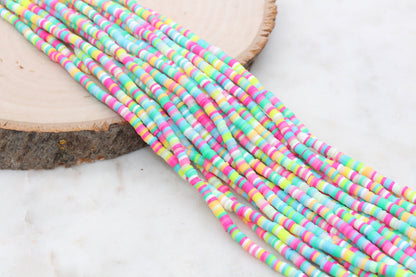 4mm Mix Heishi Beads, Rainbow Mix Polymer Clay Disc Beads, #859
