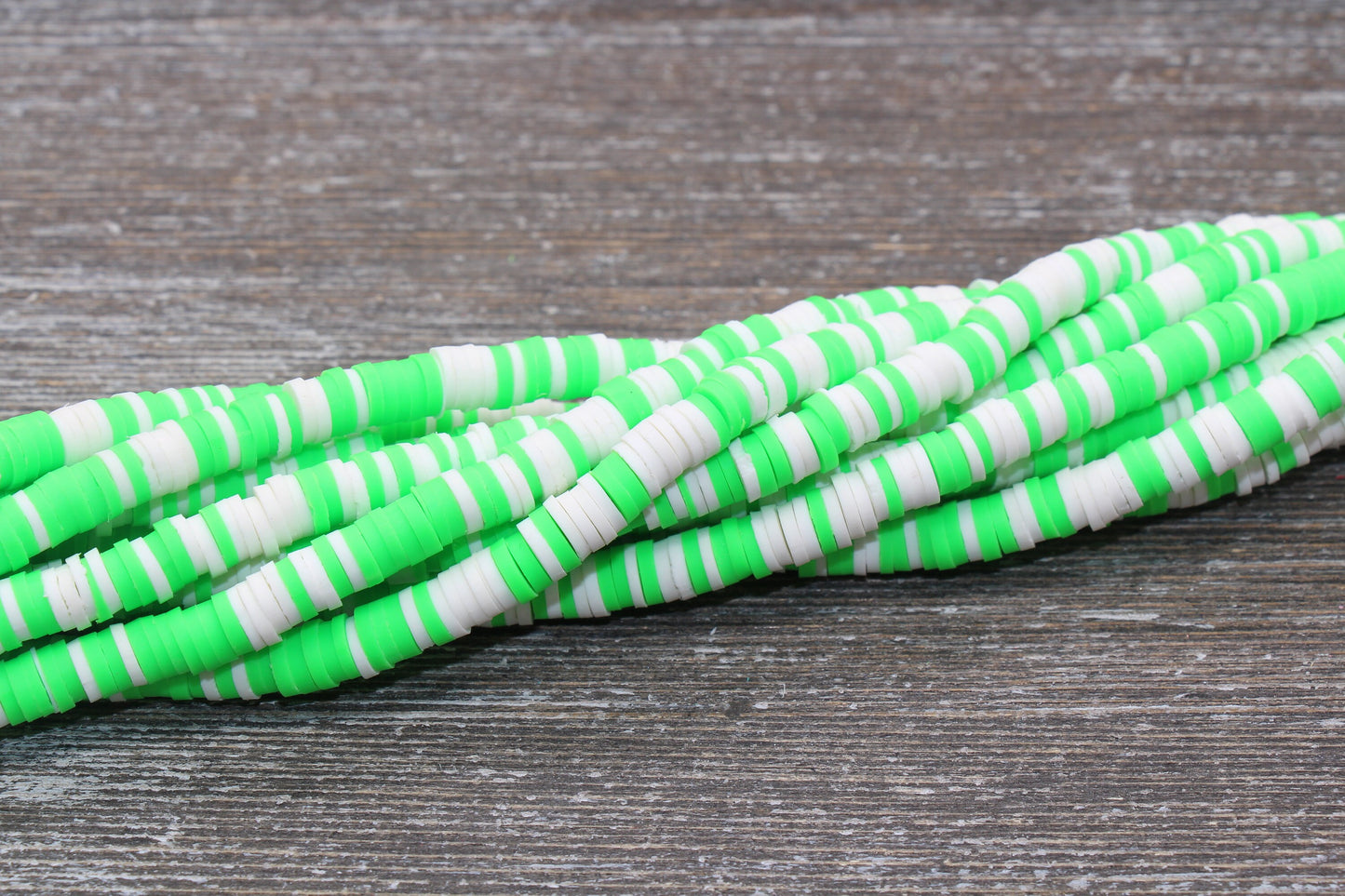 6mm Green and White Mixed Heishi Beads, Polymer Clay Disc Beads, African Disc Beads, Wholesale Vinyl Heishi, 16 inch Strand #60
