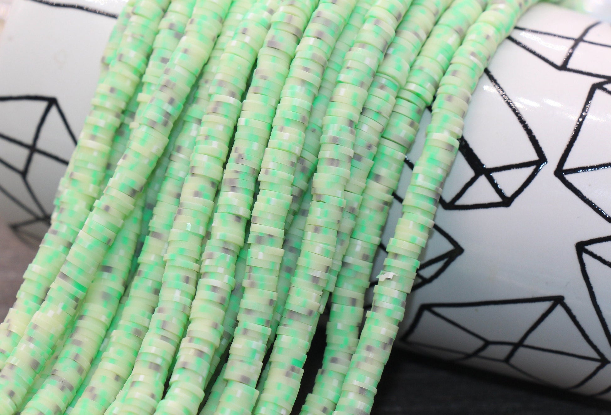 6mm Green Speckled Heishi Beads, Green Speckled Polymer Clay Disc Beads, African Disc Beads, Vinyl Heishi, 16 inch Strand #436