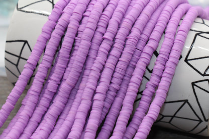 6mm Lilac Pink Heishi Beads, Polymer Clay Disc Beads, African Disc Beads, Vinyl Heishi, 16 inch Strand #336