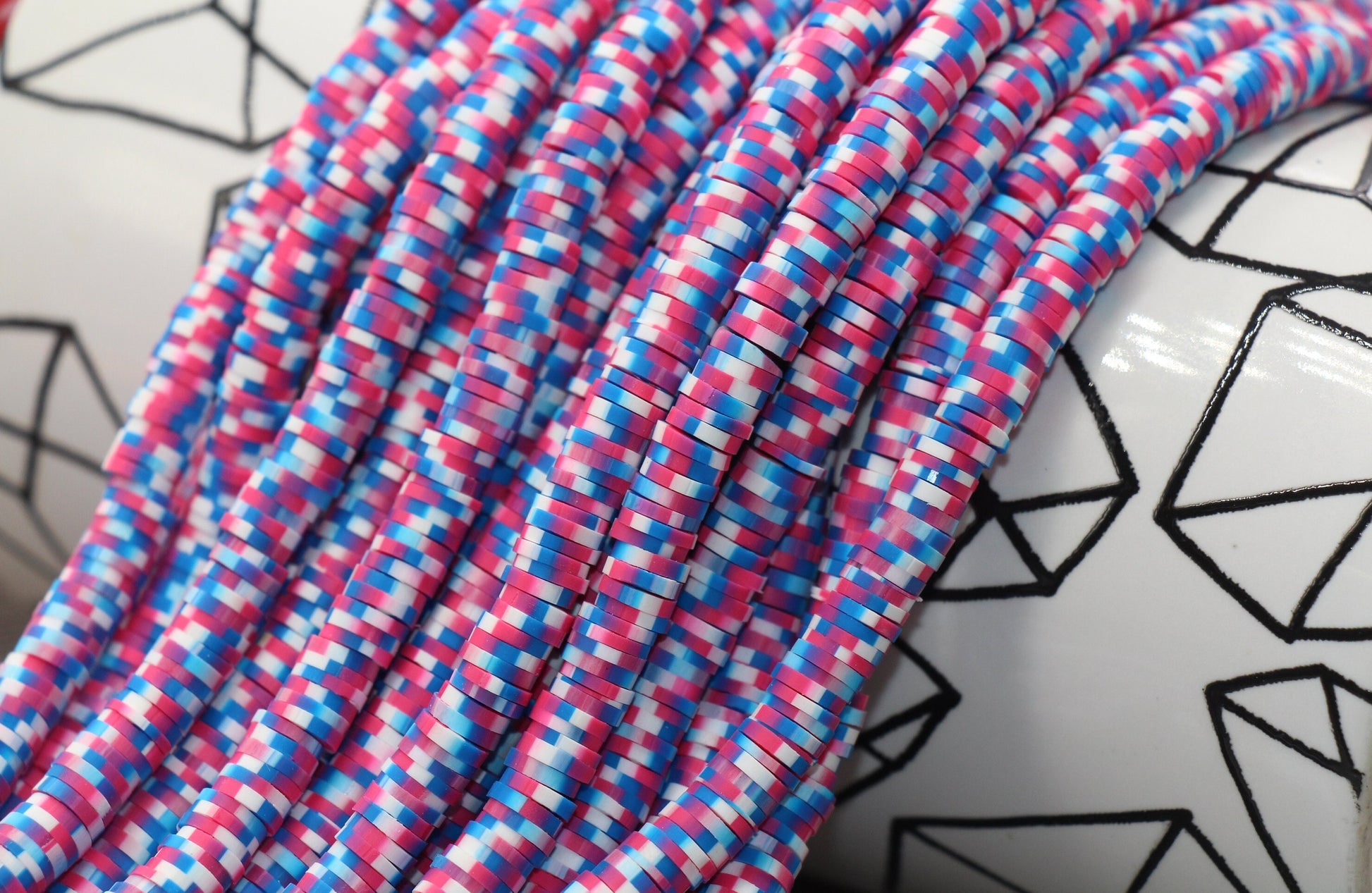 6mm Multicolored Speckled Heishi Beads, Pink, Blue and White Polymer Clay Disc Beads, African Disc Beads, Vinyl Heishi, 16 inch Strand #207