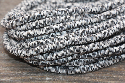 6mm Speckled Heishi Beads, Black, White and Gray Mix Colors Polymer Clay Disc Beads, African Disc Beads, Vinyl Heishi, 16 inch Strand #300