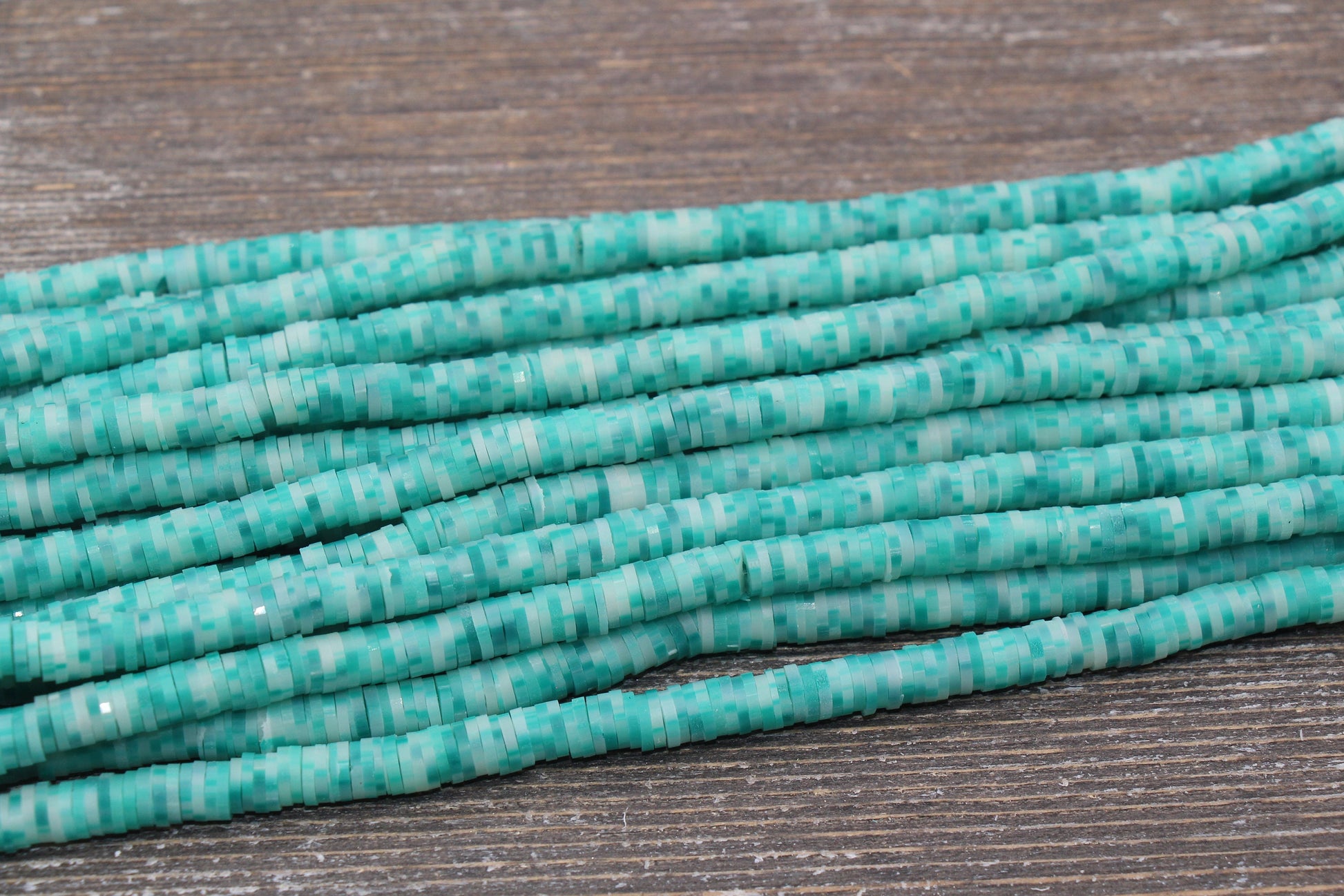6mm Speckled Heishi Beads, Green Speckled Polymer Clay Disc Beads, African Disc Beads, Vinyl Heishi, 16 inch Strand #399