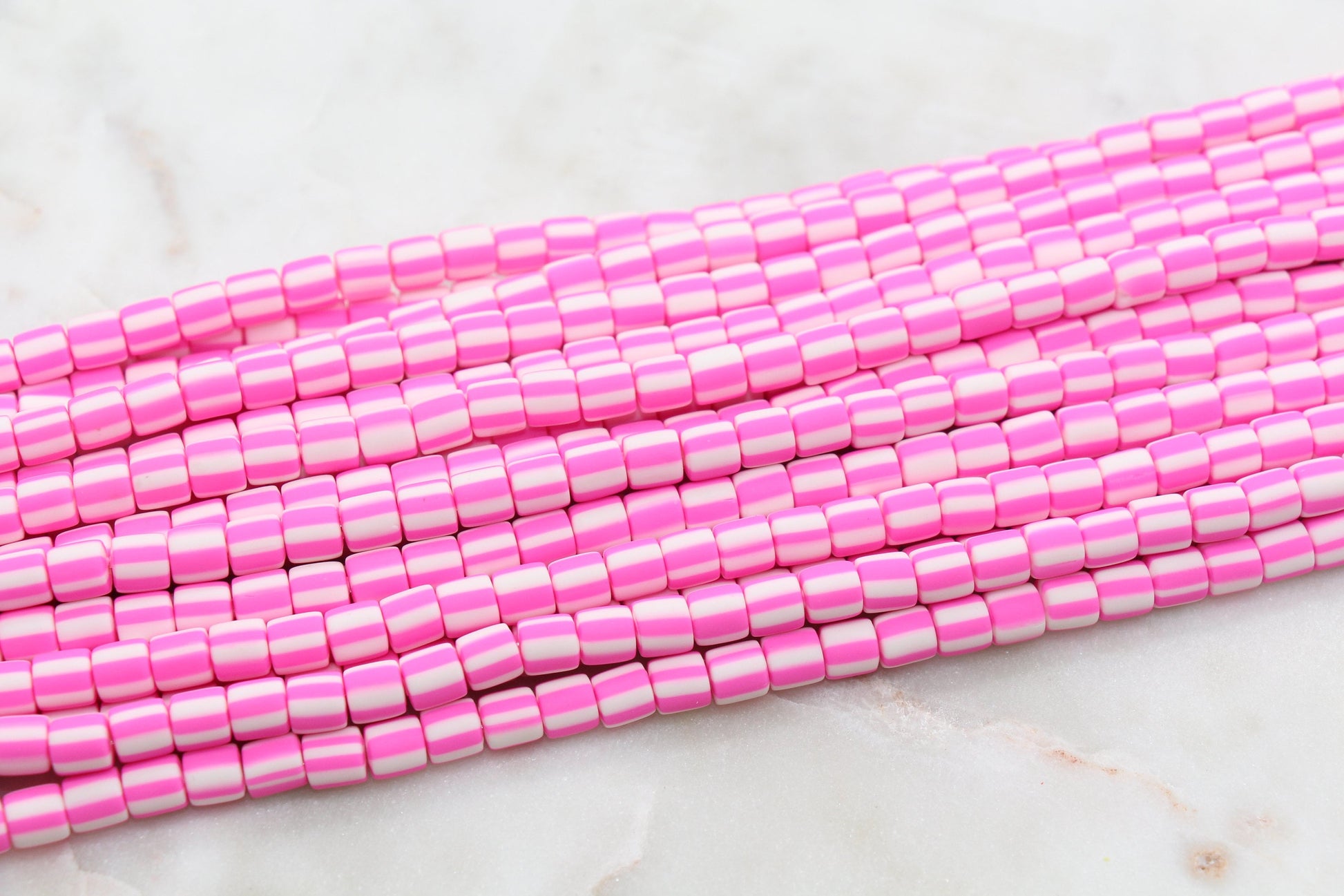 6mm Pink Striped Heishi Beads, Clay Tube Beads #848