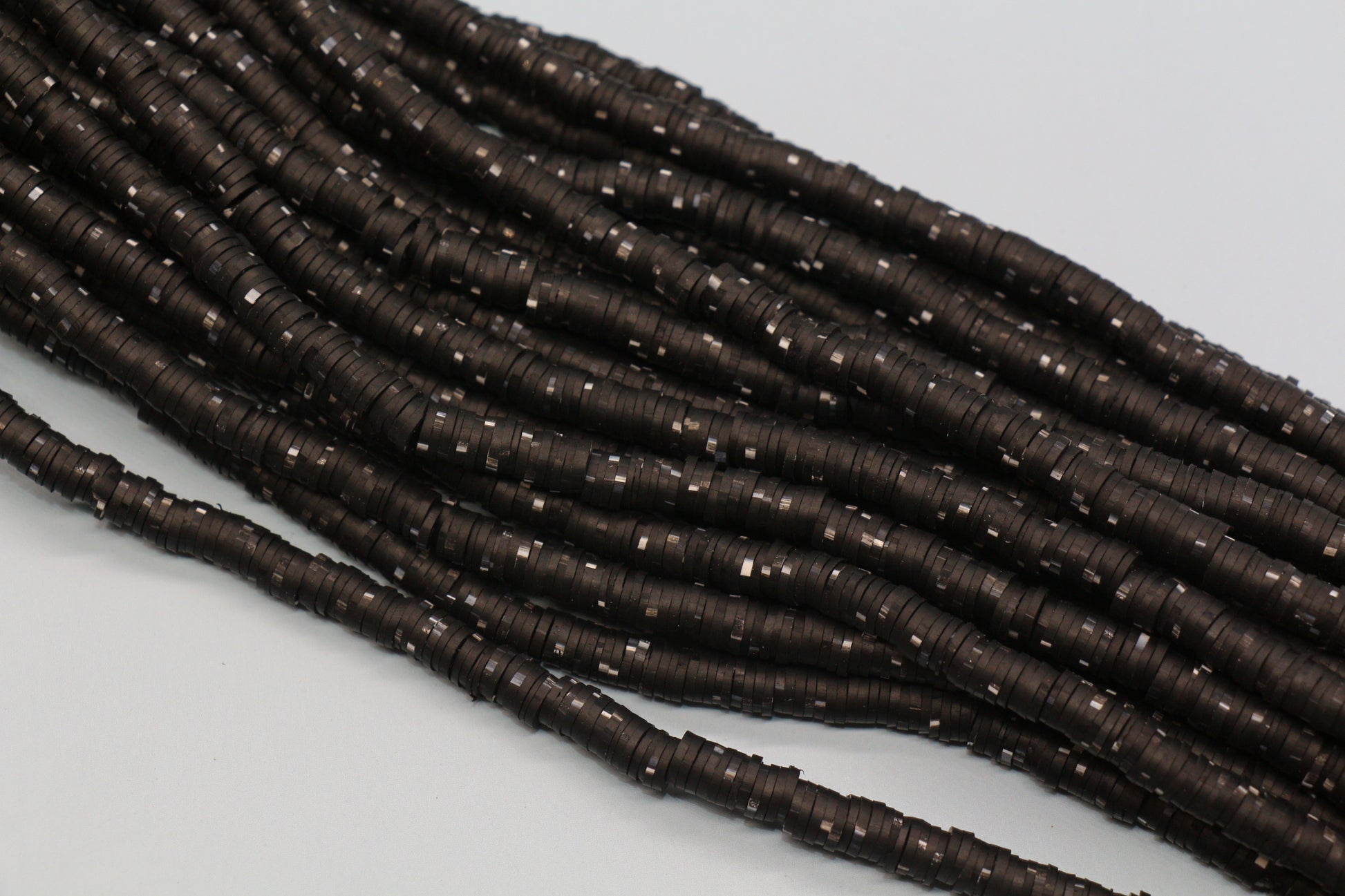 6mm Black with White Speckled Heishi Beads #686