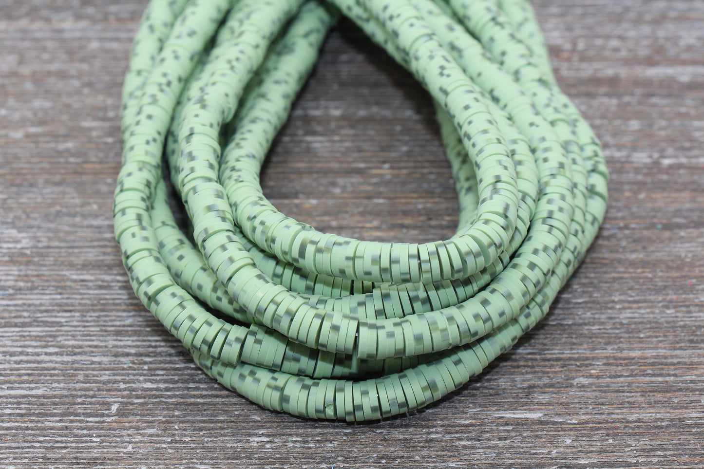 6mm Green Speckled Heishi Beads, Mix Color Polymer Clay Disc Beads, African Disc Beads, Vinyl Heishi, 16 inch Strand #43
